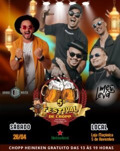 O evento está sendo organizado e promovido pela loja maçônica Fraternidade 05 de Novembro será realizado no dia 26/04 (sábado), das 13 às 19 horas.