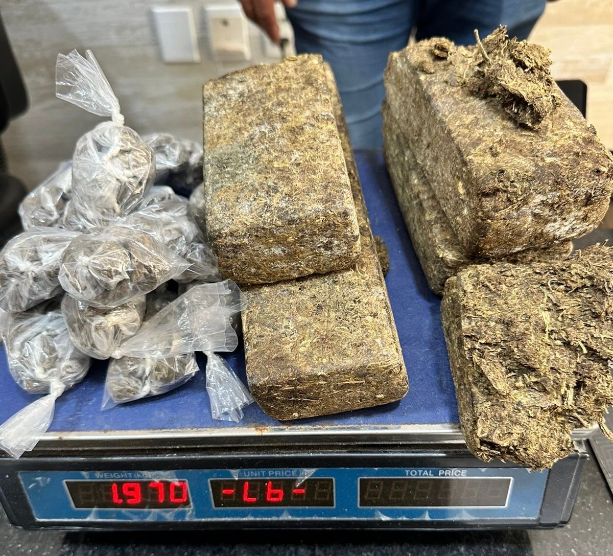 – 5 tabletes de maconha (1,8 kg)